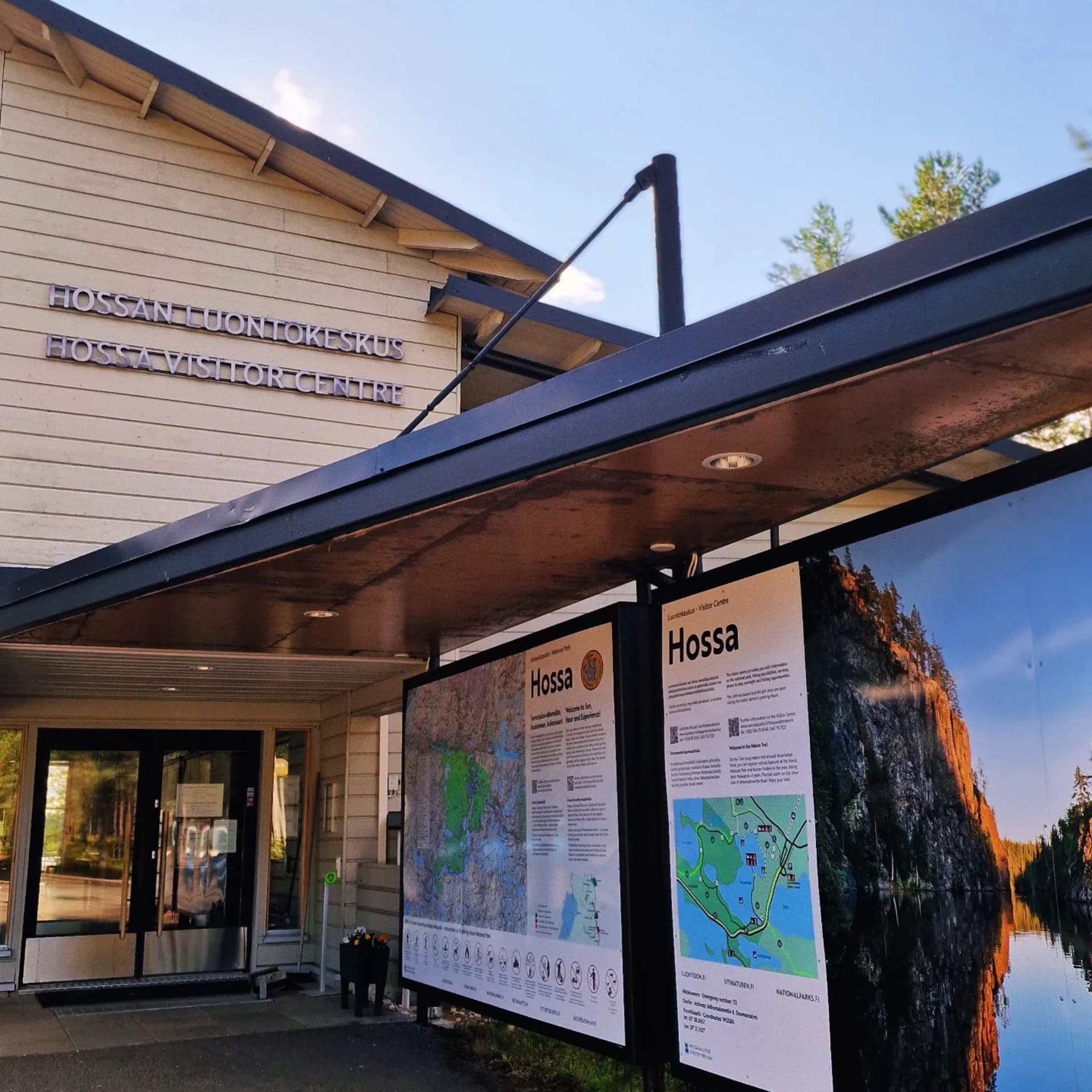 Hossa-KylmäluomaThe landscapes of Hossa National park create a unique starting point for meetings and work well-being days. Hossa Visitor Centre offers a package that easily includes accommodation, catering and rental equipment. We serve groups by agreement. The visitor centre's renovated premises can accommodate meetings for around 100 people. The visitor centre also has a smaller auditorium - a meeting room equipped with modern technology including sound systems and video projectors. The auditorium is suitable for groups of around 25 people. In addition to the visitor centre's premises, the Pääpirtti log cabin located in the Hossa national park is a good option for those looking for a more wilderness-inspired gathering space. Hossa Visitor Centre can tailor meals and program services to your event upon request.